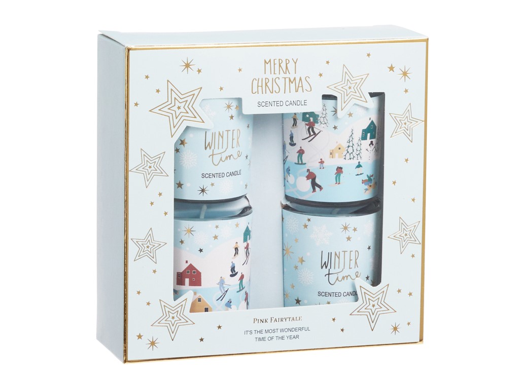 Ajándékszett Üveg 4db illatgyertya 45x52mm Merry Christmas mix, színes