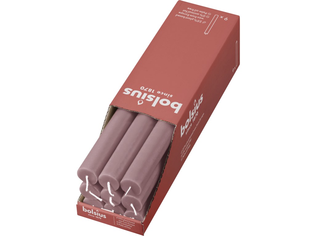 A vékony és magas, rusztikus Bolsius gyertya lágy rózsaszín hamvas rózsa árnyalatban alkalmas gyertyatartókba, dekorációként és ünnepi asztalokra. Diszkrét megjelenése nyugodt és romantikus hangulatot kölcsönöz bármilyen enteriőrnek.