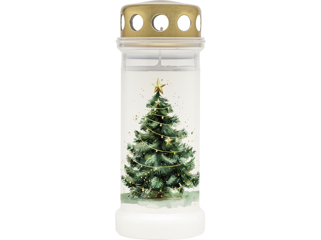 Bolsius temetői betét fedéllel és karácsonyi motívummal - 70 óra csendes emlékfény.