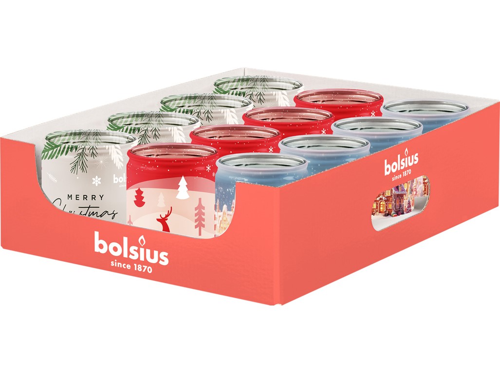 Bolsius díszüveg karácsonyi motívumokkal - gyönyörű ünnepi hangulat gyertyafényben.