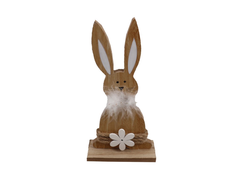 Dekorációs fa 100x205mm nyúl állványon, natúr