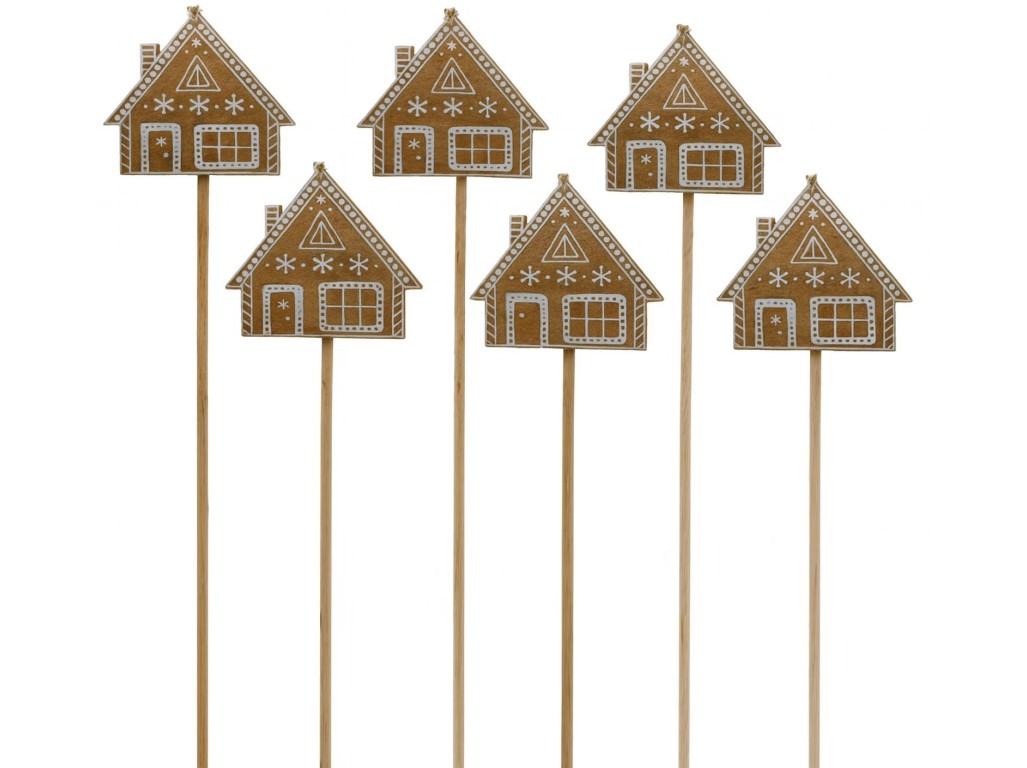 Fa beszúró 55x55mm + nyárs mézeskalács házikó, barna, fehér