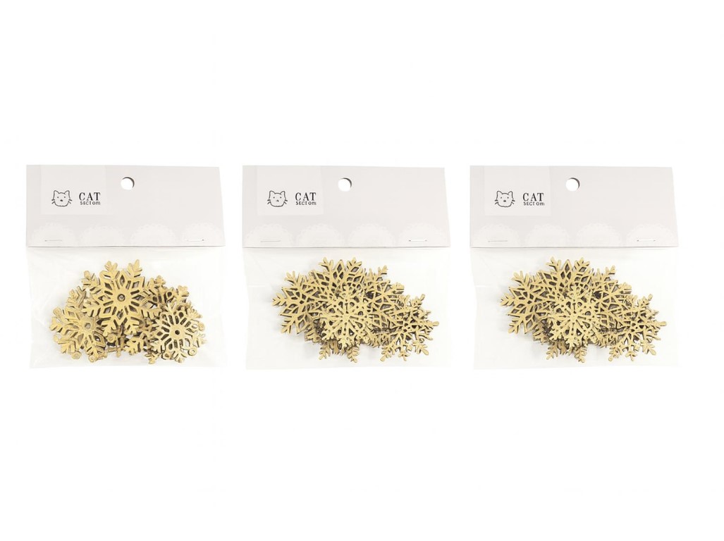 Fa dekorációs szett 12db 38x36/37x40mm hópelyhek mix, arany
