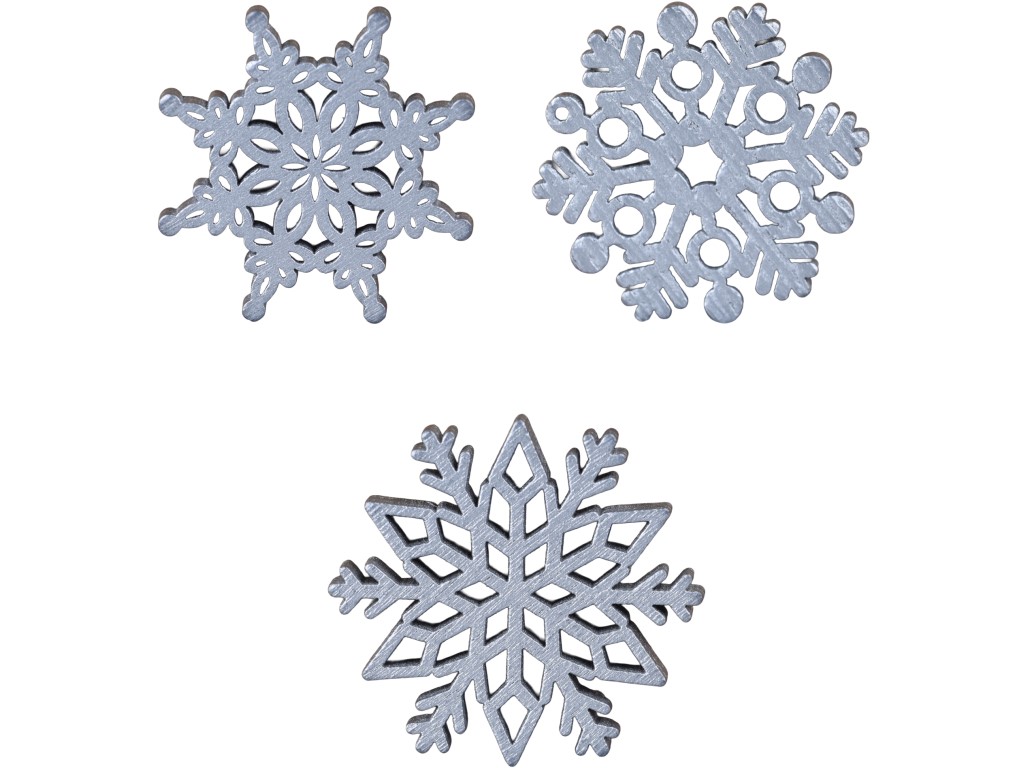 Fa dekorációs szett 12db 38x36/37x40mm hópelyhek mix, fehér