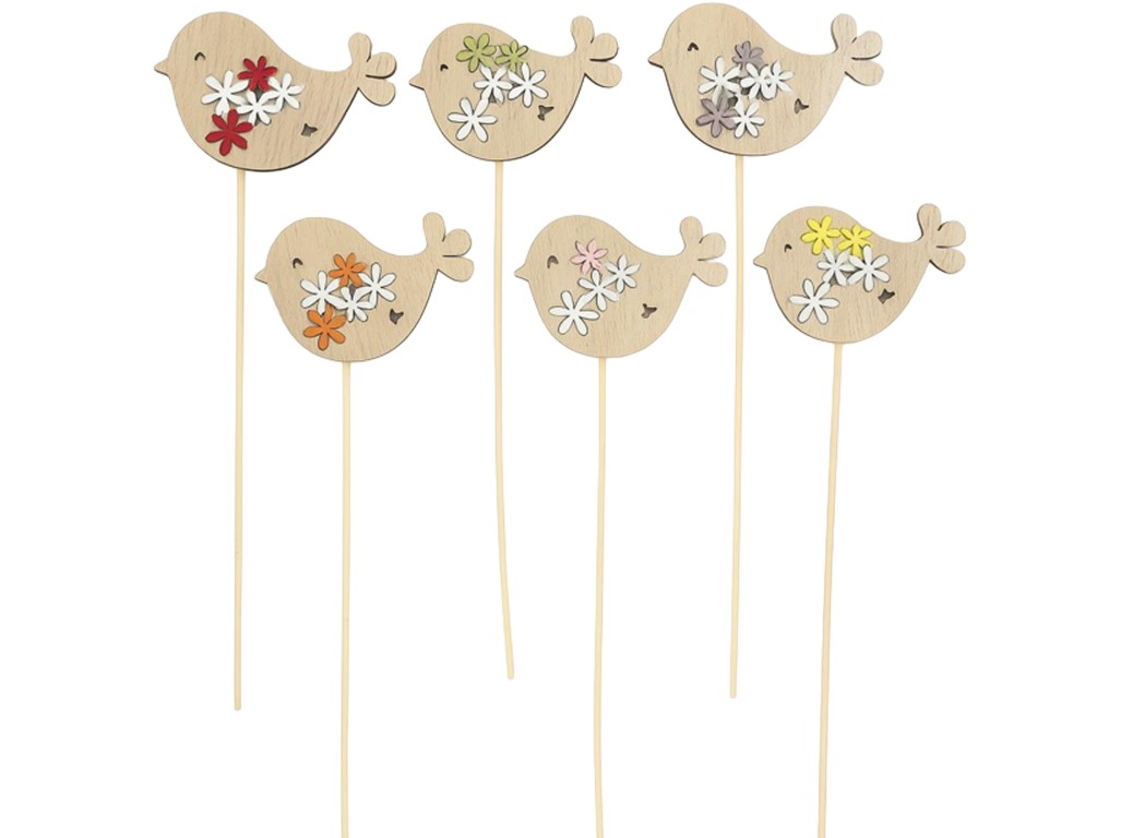 Fa pálcika,75x60 mm, 6db, madár, színkeverék