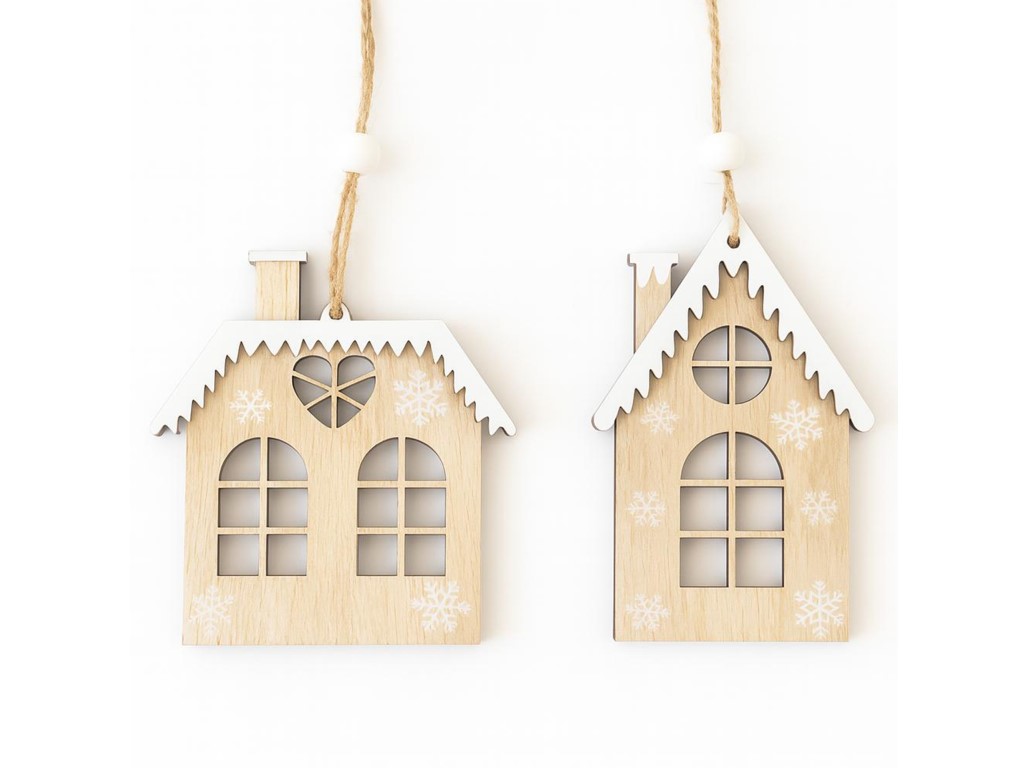 Felakasztható dekor 110x60/94x75 mm házikó mix, natúr
