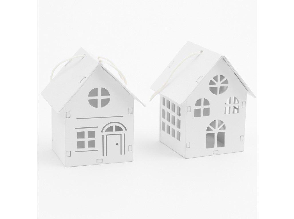 Felakasztható dekor 48x60mm házikó mix, fehér