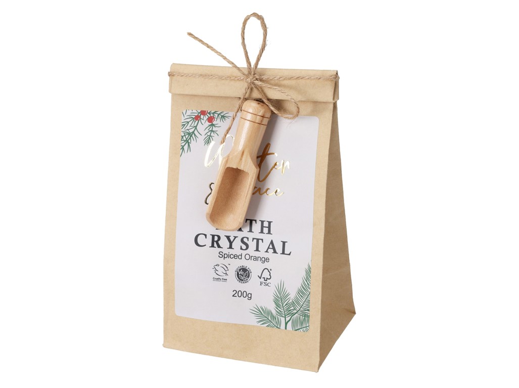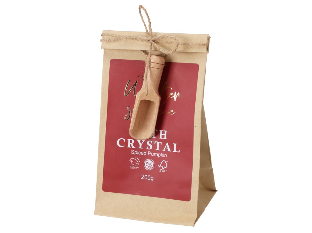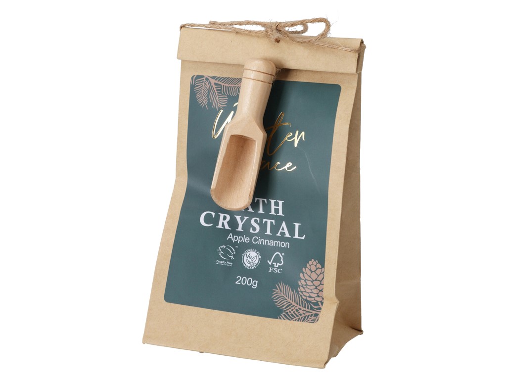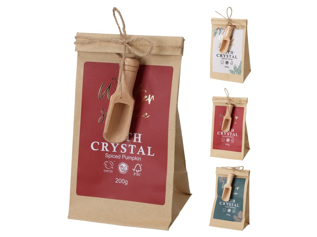 Színes fürdősó ajándékszett – papírzacskóban, fakanállal. Ez a bájos ajándékszett tökéletes kiegészítője is a pihentető fürdőzéseknek.