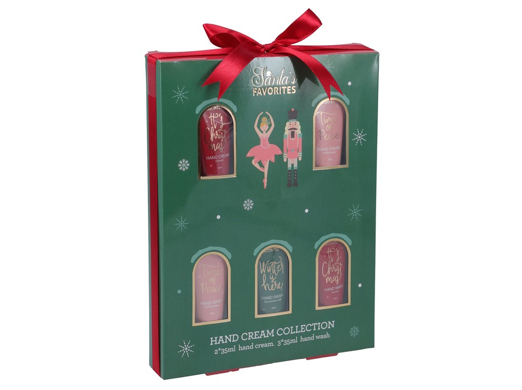 Színes fürdőszobai ajándékszett 2 kézkrémmel (2×35 ml) és 3 folyékony szappannal (3×35 ml). Ideális ajándéknak vagy egy kedves gesztusnak.