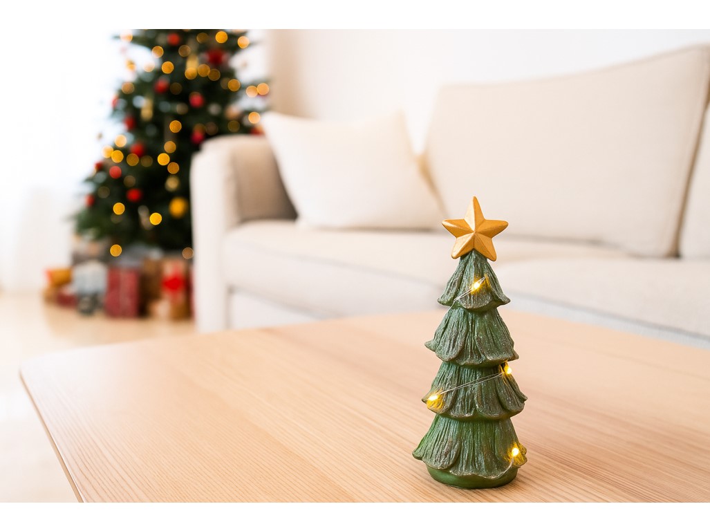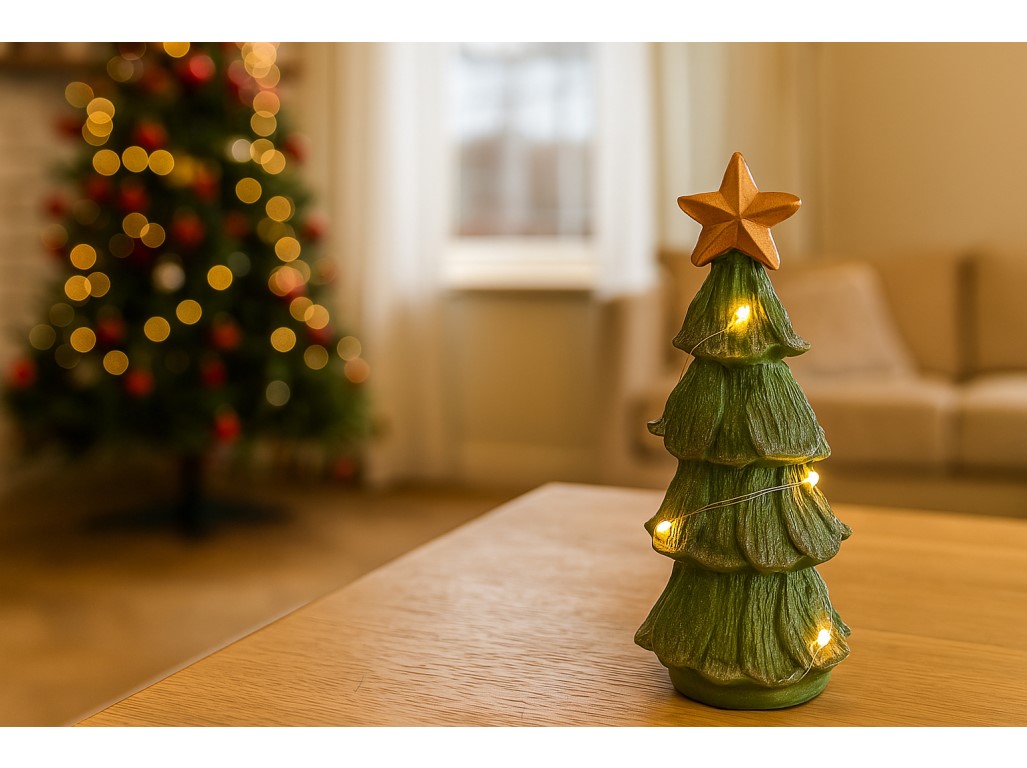 LED dekoráció fa 130x25x160mm Házikó, natúr, fehér csillámokkal2 670 Ftraktáron