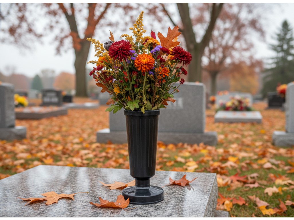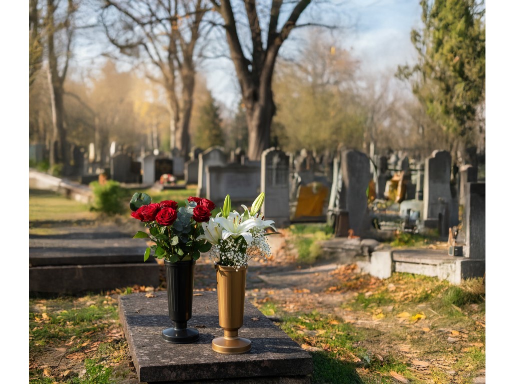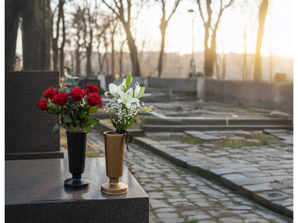A 30 cm súlyú műanyag Madonna temetőváza ideális megoldás a virágok biztonságos és stabil sírra helyezésére. A masszív súlynak köszönhetően a váza ellenáll a szélnek, és biztosítja, hogy a virágok hosszú ideig egyenesen álljanak. Az egyszínű kialakít