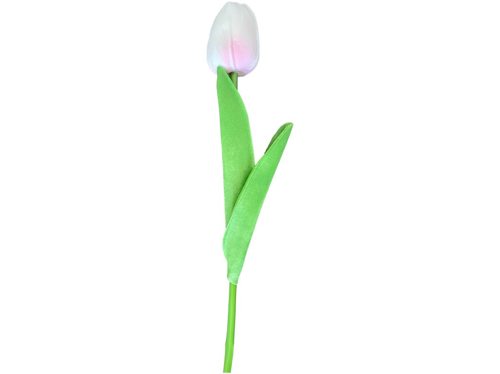 Egy elegáns, 34 cm hosszú, rózsaszín műtulipán gyönyörű dísze lehet vázának, tavaszi virágkompozícióknak vagy koszorúknak.