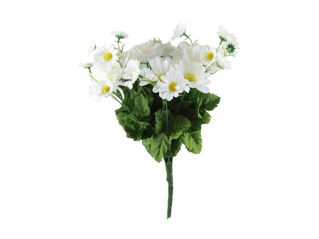 Művirágok, műanyag, 400 mm, Százszorszép csokor, fehér