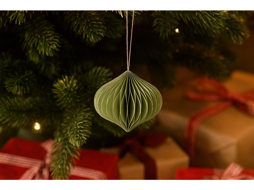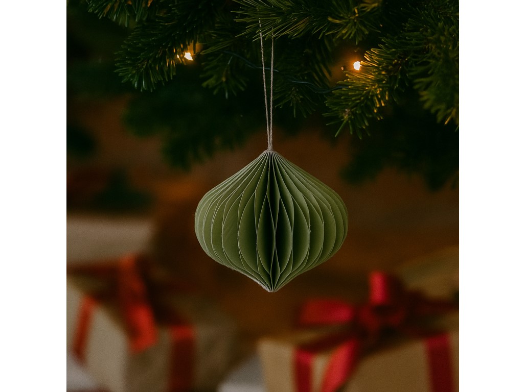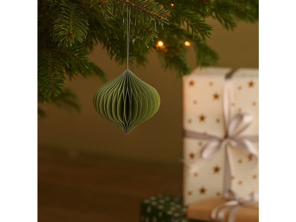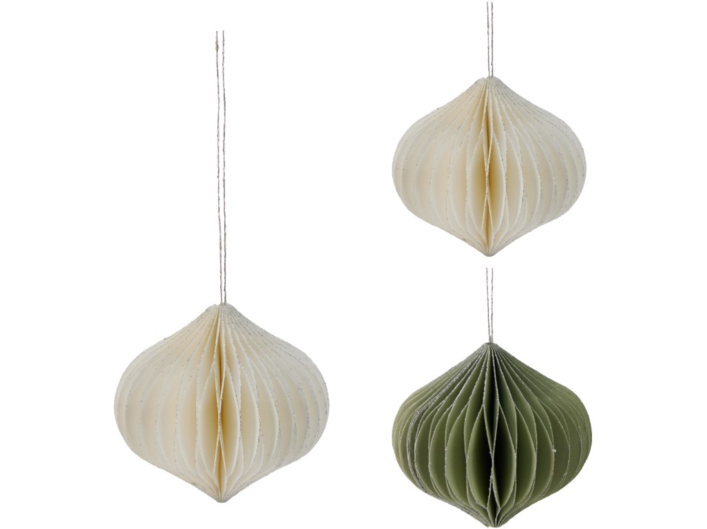 Papírdíszek 80mm karácsonyfához hagyma mix, zöld, fehér, ezüst csillámmal