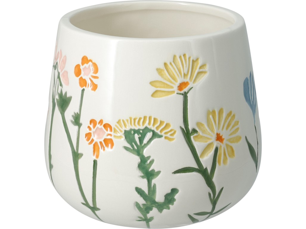 Virágcserép dolomitból 140x120mm tavaszi virág motívum, színes