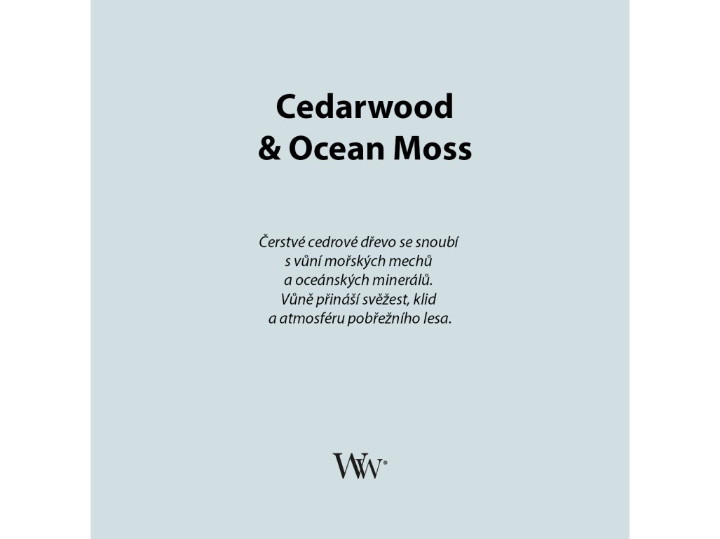 Friss cédrusfa találkozik a tengeri mohák és az óceáni ásványok illatával. Üde frissességet, nyugalmat és a tengerparti erdő hangulatát hozza el.