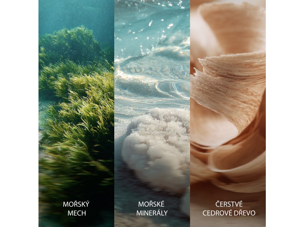 Friss cédrusfa találkozik a tengeri mohák és az óceáni ásványok illatával. Üde frissességet, nyugalmat és a tengerparti erdő hangulatát hozza el.