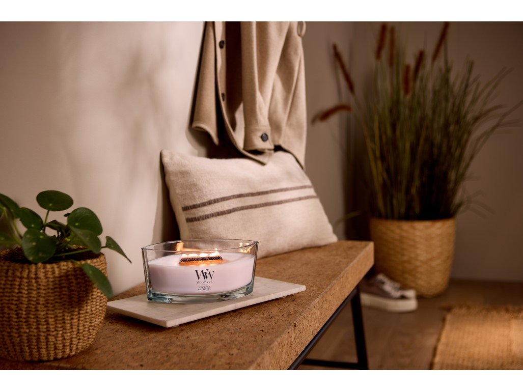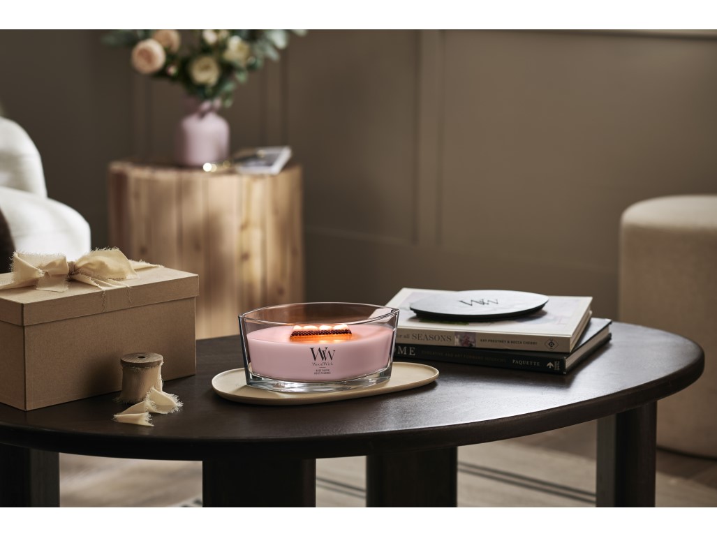 Fedezd fel azokat a pillanatokat, amikor lelassul az idő. A „hajó” forma intenzív illatot és megnyugtató atmoszférát teremt, amely betölti az egész teret. A fa kanóc halkan ropog, a láng finoman táncol, meleget, biztonságot és jóleső otthonosságot ad – mintha a természet egy darabját hoznád haza. A nyitott kialakítás nagyobb illat-tükröt hoz létre, így az aroma egyenletesen oszlik el a nagyobb helyiségekben is. A pasztellszínek és a letisztult üvegdesign harmonikusan kiegészíti a teret, és minden meggyújtás érzékszervi rituálévá válik, a természettel összhangban. TIPP: Mindig hagyd a viaszt a peremig felolvadni, és 3–4 órán át égni.