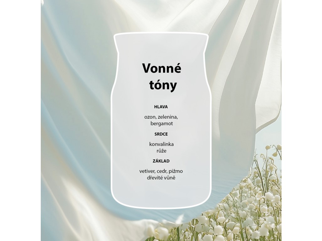 Nap illatú pamut, zöld árnyalatokkal, fehér virágokkal és egy csipetnyi citrommal kombinálva. Platina illat.
