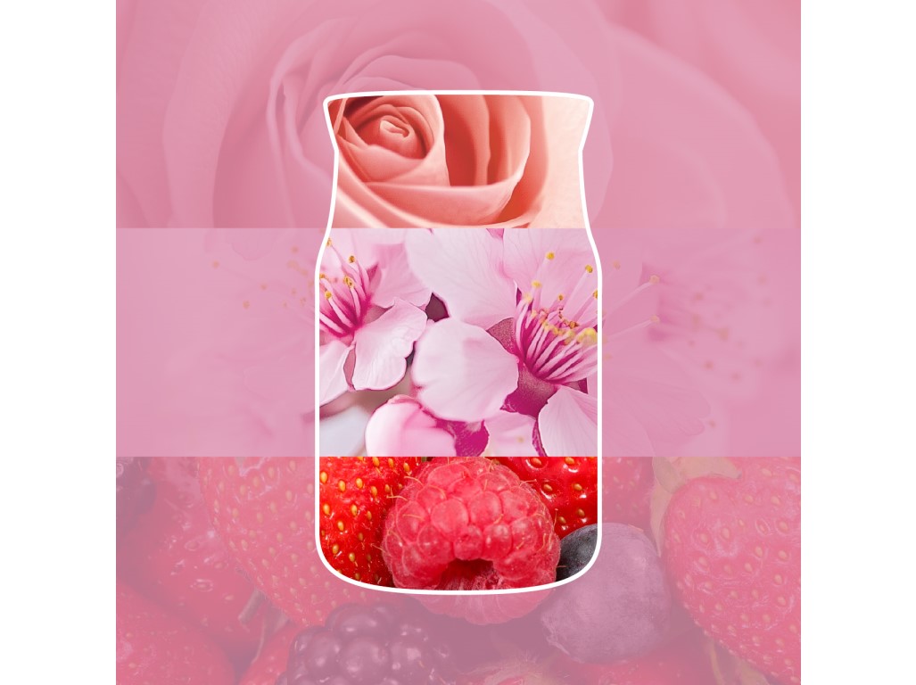 Üde nyitány piros bogyósokkal és grapefruittal, majd virágos szív cseresznyevirággal, rózsával és fréziával. A vaníliás, mandulatejes és szantálos alap selymességet és tavaszi varázst ad.